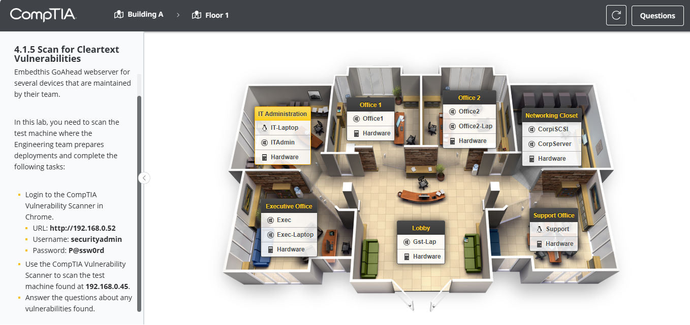 Interactive eLearning modules with videos, PBQs, and guided labs